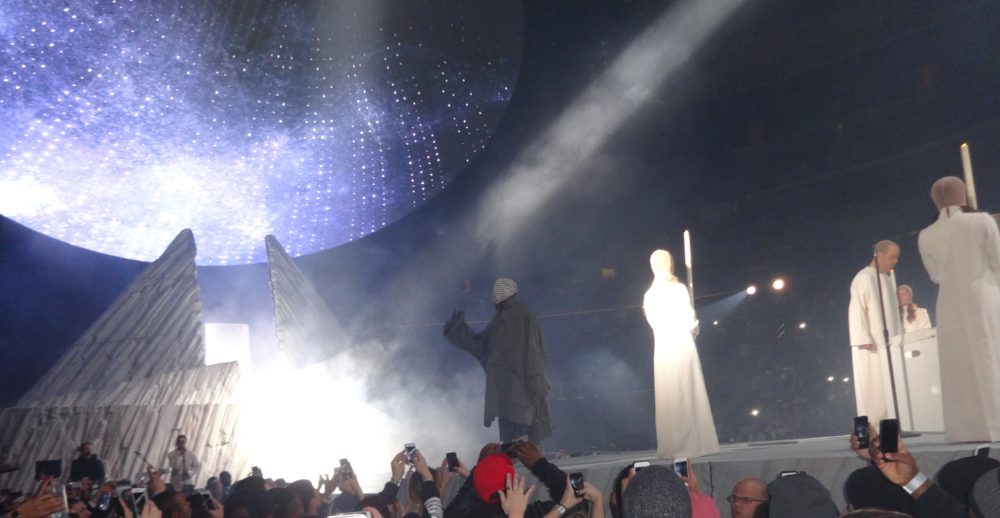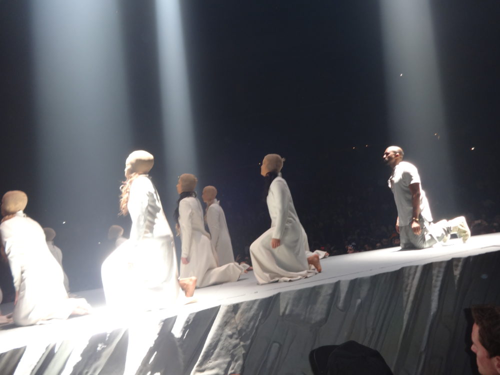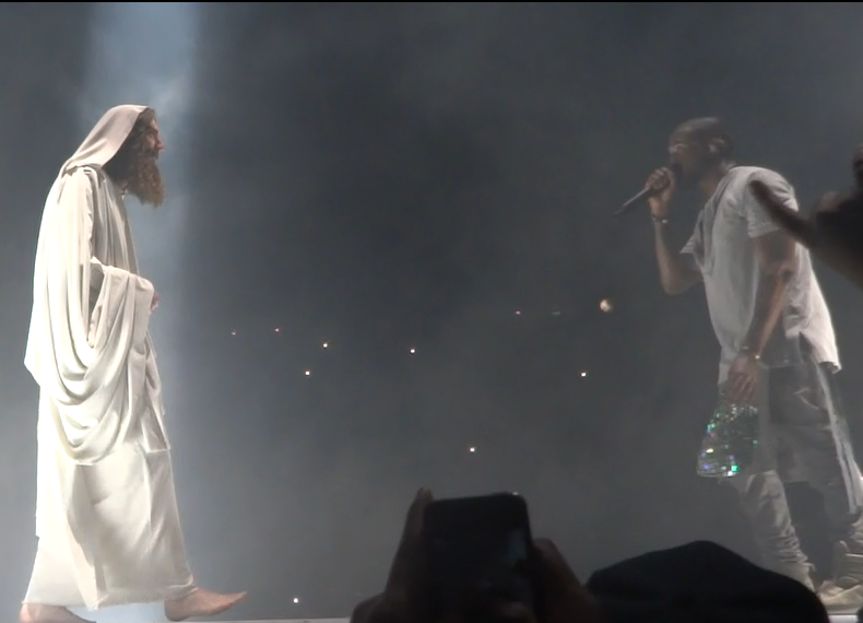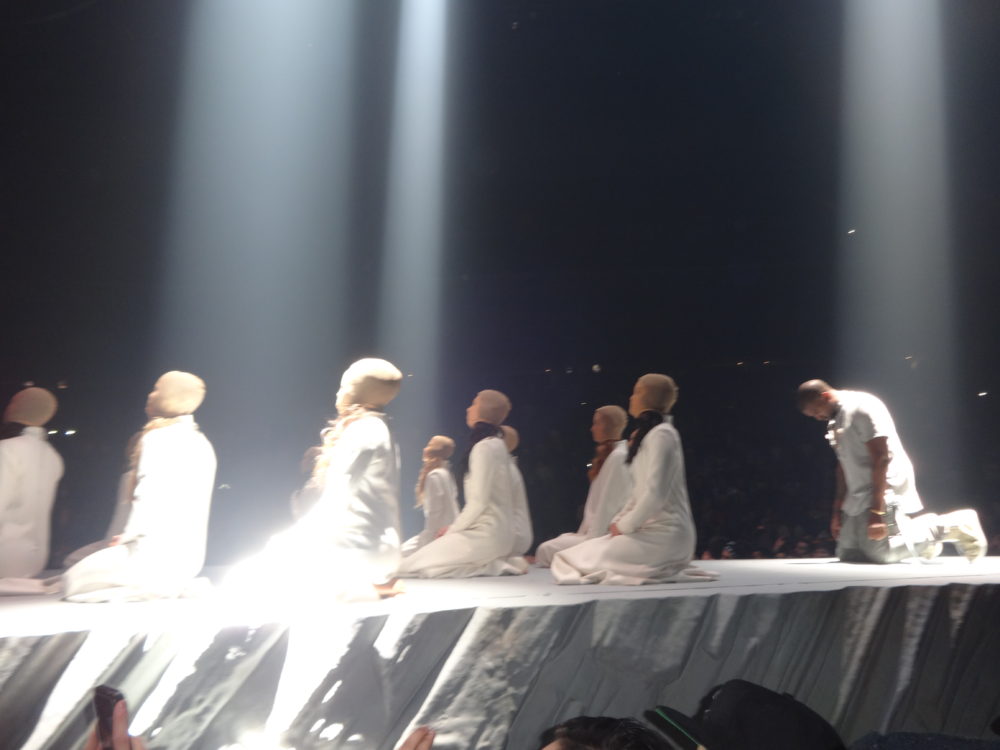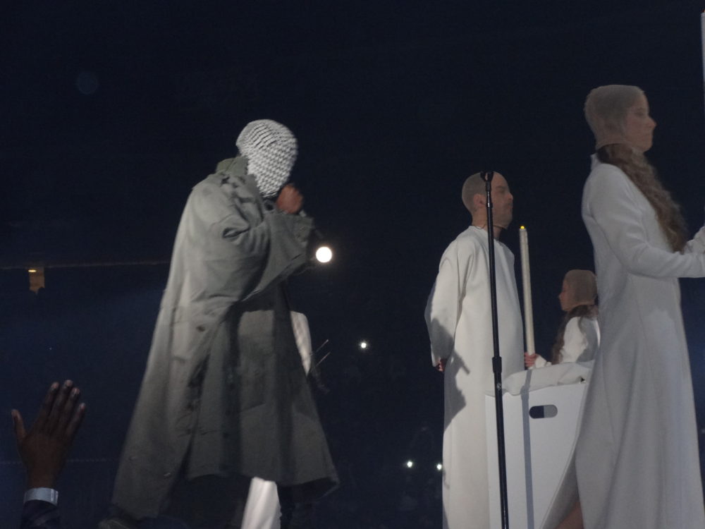 Yeezy performed many of his hits from “College Droput” to “Yeezus”, and his stage-show was impressive; he had giant retractable mountain on stage, a red-eyed ‘wolf’, a choir of dancing angels, and even ‘White Jesus’ came on stage to pray with Kanye before the intro of- you guessed it- “Jesus Walks”. During part of his show ‘Ye was even wearing a ‘iced-out’ mask and trench-coat a la “The Phantom of the Opera”. Of course during the show Kanye went off on one of his infamous ‘rants’, where he addressed everything from his so-called ‘beef’ with Drake, his new deal with Adidas, and he even took time to ‘diss’ Nike, Apple, and the cast of ‘Saturday Night Live’ as well.